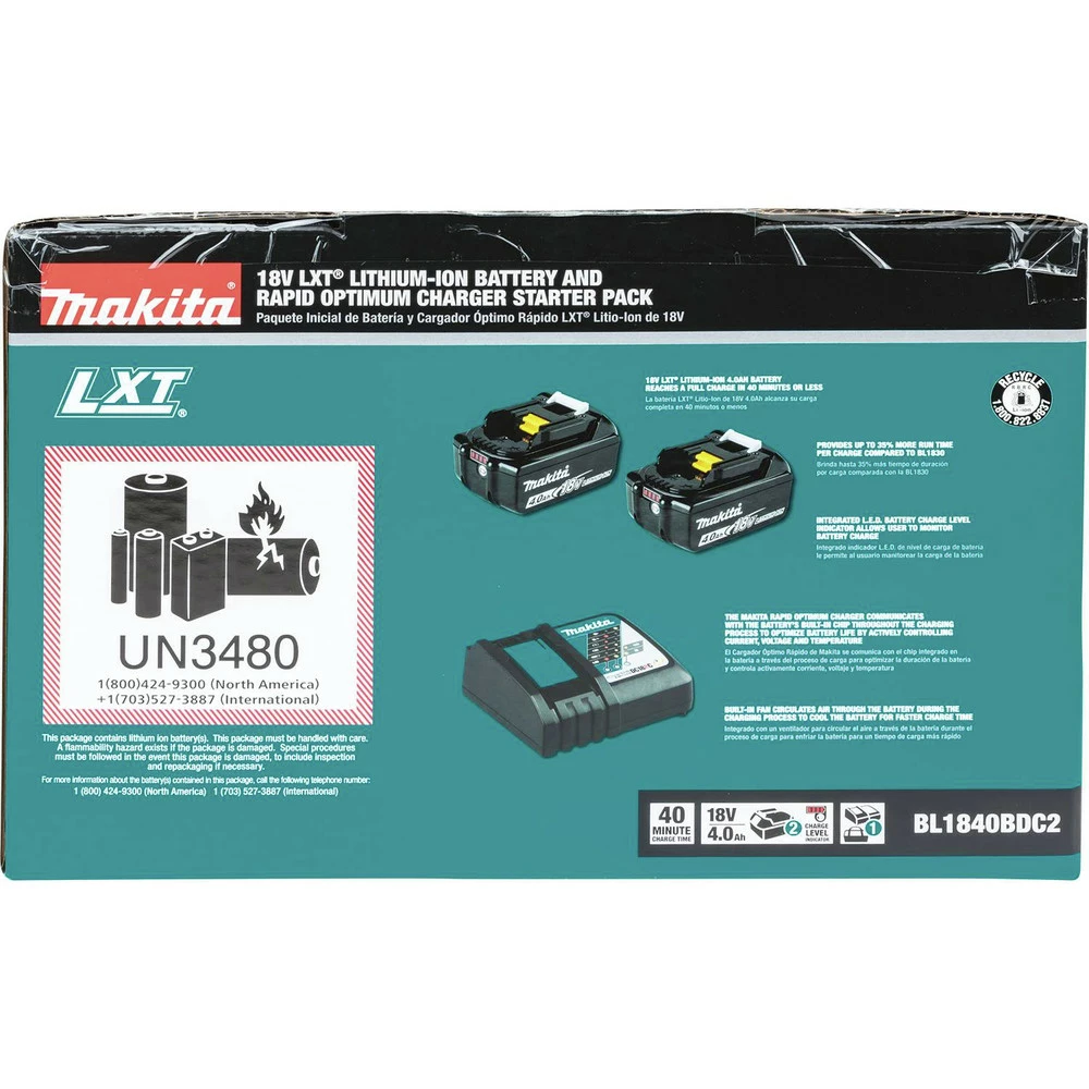- 18V LXT Lithium-Ion 4 Ah battery reaches a full charge in 40 minutes or less