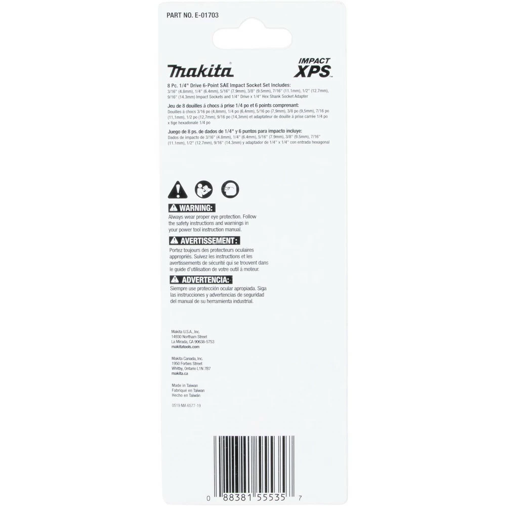 - Includes 3/16 in., 1/4 in., 5/16 in., 3/8 in., 7/16 in., 1/2 in., 9/16 in. Impact Sockets and 3/8 in. Drive x 1/4 in. Hex Shank Socket Adapter