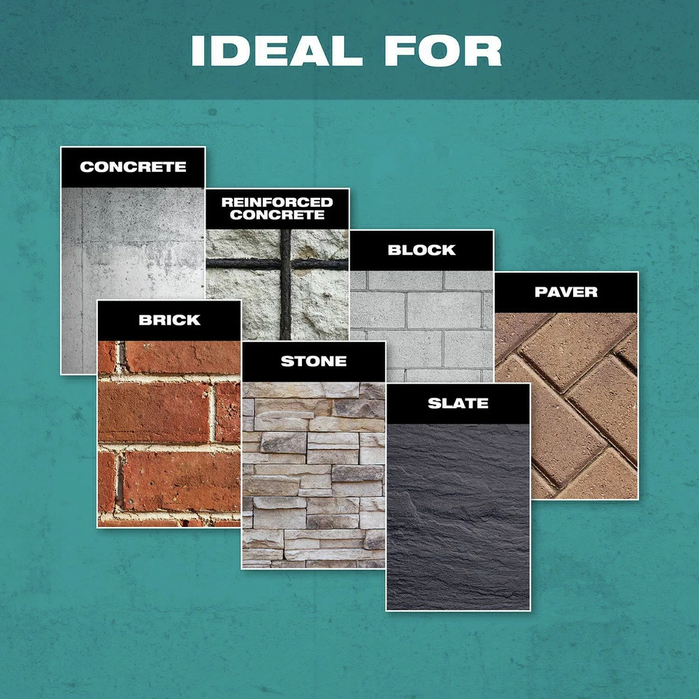 - Turbo rim for faster and smoother cutting of masonry materials including concrete, block, brick, pavers, and roof tiles