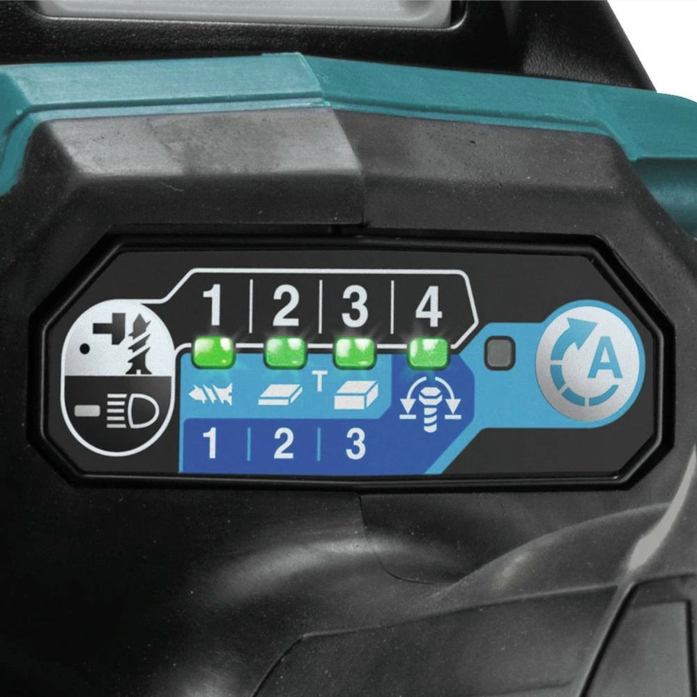 - Additional one-touch 4-speed power selector button under the chuck for added convenience