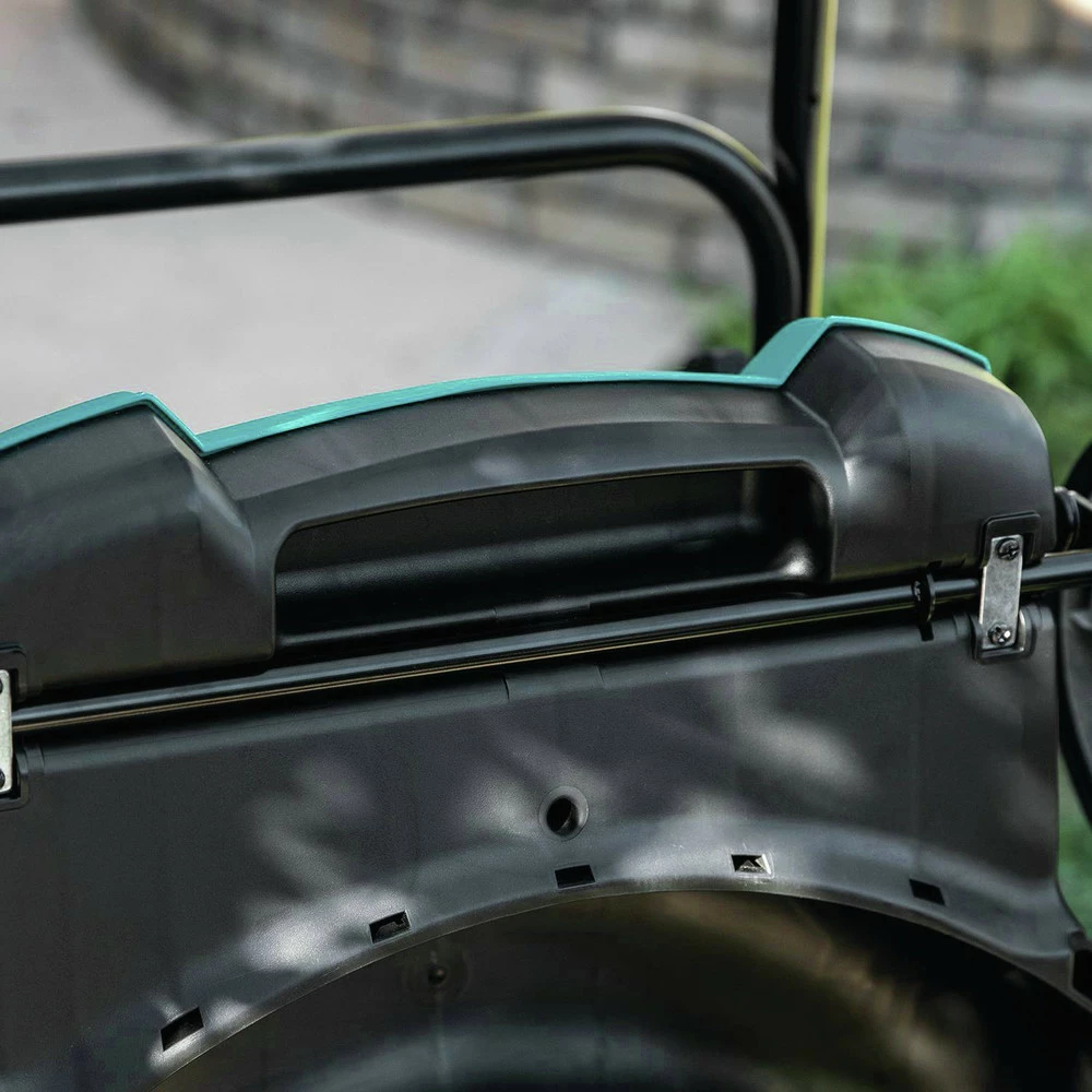 - Maximum grip tires for improved performance on damp grass or uneven terrain