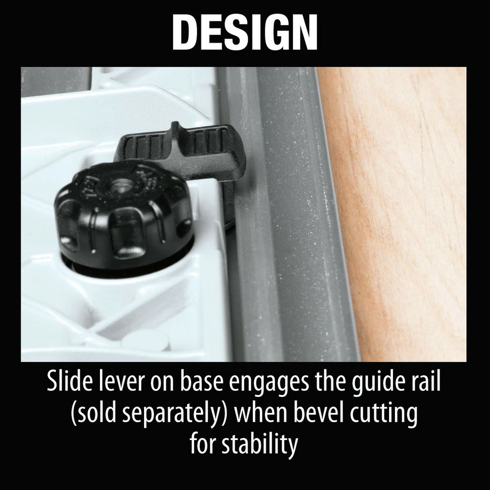 - Bevel capability (-1 Degrees to 48 Degrees) with positive stops at 22.5 Degrees and 45 Degrees