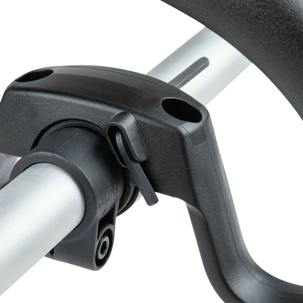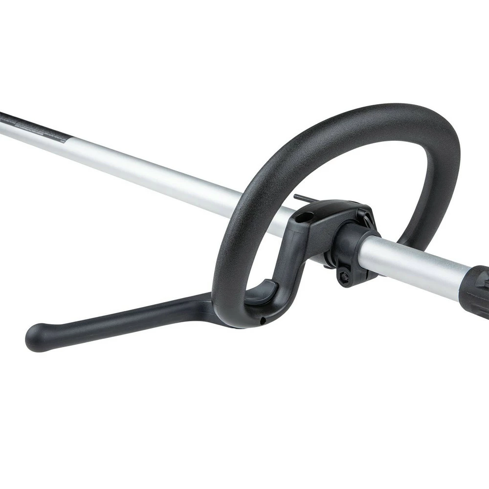 - Loop handle equipped with barrier bar for compatibility with brush cutter blades