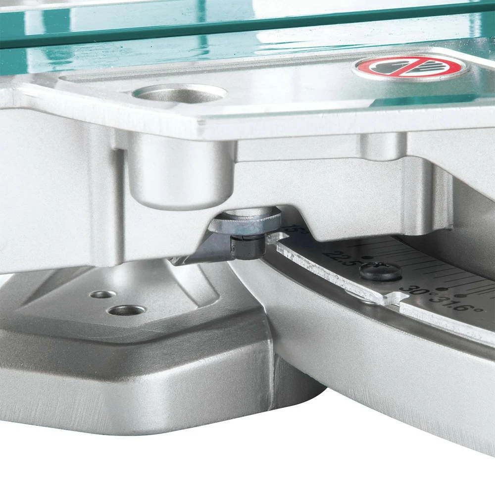 - Unique 2-Steel Rail Sliding System design offers single slide-glide operation; reduced saw footprint allows operation flush against a wall