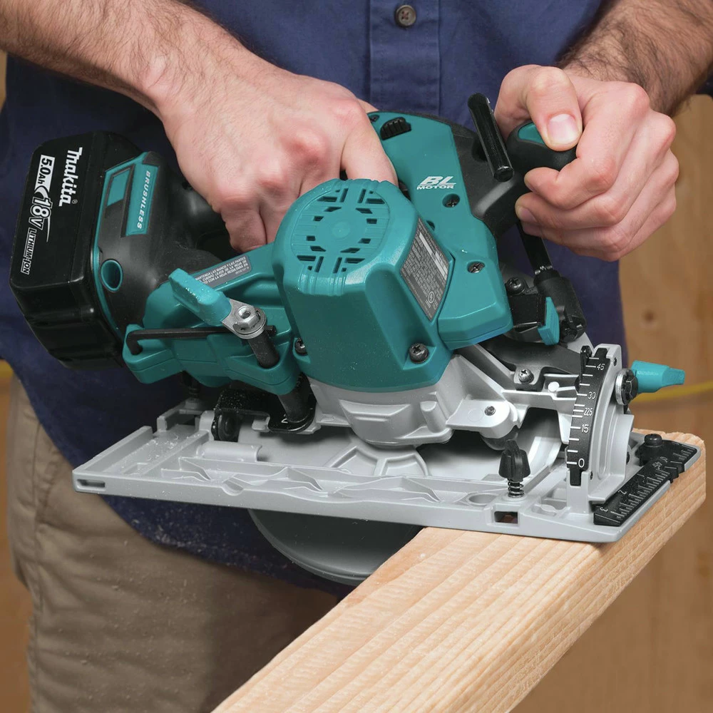 - 18V LXT BL Li-Ion 6-1/2 in. Circular Saw – XSH03Z – 6-1/2 in. Circular Saw BL Motor delivers 5000 RPM for faster cutting and ripping; cuts 2-1/4 in. at 90 Degrees and bevel capacity (0 Degrees – 50 Degrees)